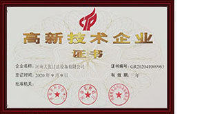 2020年9月9日——河南大張過(guò)濾設(shè)備有限公司榮獲“高新技術(shù)企業(yè)”證書(shū)